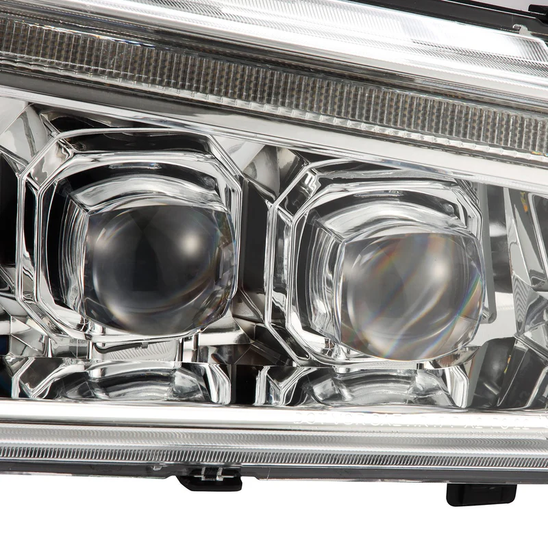AlphaRex Design: Alpharex Nova Series Headlights use their signature 3D ice-cube projector lens system inside. Besides the horizontal NOVA projector row, They have also added a LED tube around the edge as DRL and sequential turn signal. The LED tube is not only used as switchback DRL and turn signal, it also has the activation light feature which is an animated lighting sequence when you unlock and lock your vehicle. These projector headlights have a quad projector design, with the outer 3 projector as low beam, and inner projector as high beam.