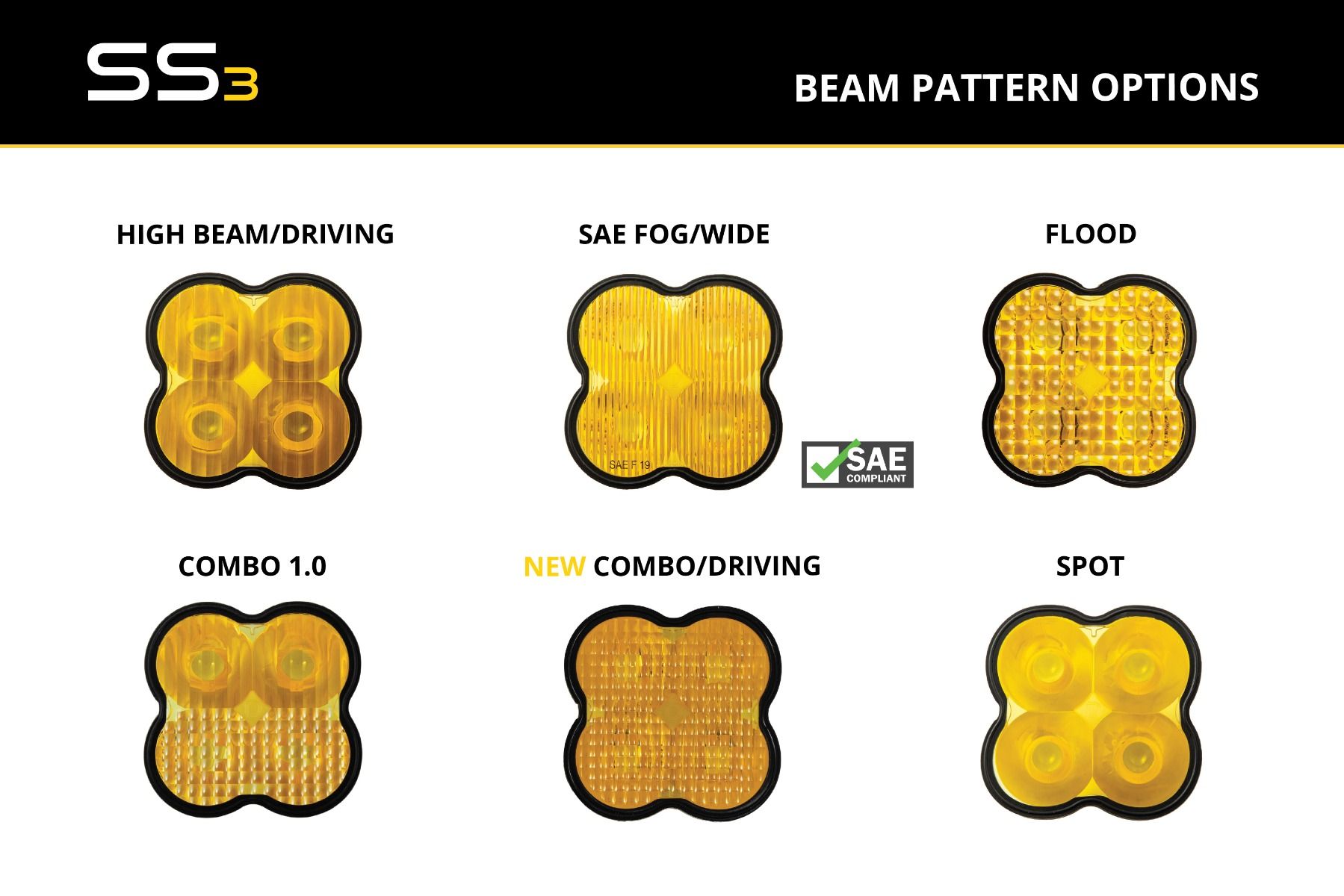 Available in SAE Driving, SAE Fog, Flood, Combo, or Spot beam patterns