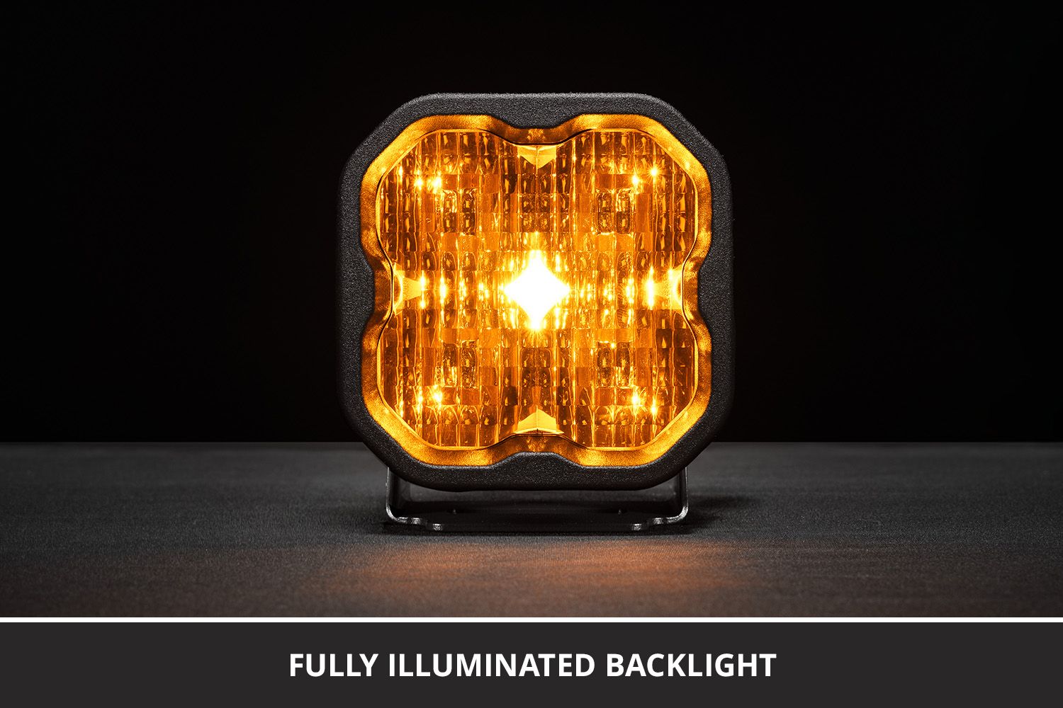 Backlight Functionality. The Stage Series 3″ LED Pod is now available with a distinctive backlight, in a brilliant amber color. The SS3’s backlight fully illuminates the TIR optic, providing a more unique and modern look than the small indicator LEDs found in other products.