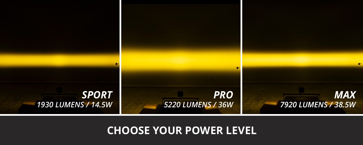 Sport, Pro, or Max. Stage Series LED pods are available at three different power levels. All options use high-intensity LED emitters, and TIR optics for unmatched focus and overall output. The Sport model uses high-intensity LEDs and is the best bang for the buck you’ll find. The Pro model steps things up in a big way, with double the total power. Finally, the Max model is designed with cutting-edge automotive emitters, for both high power and extreme intensity. This brand new technology comes at a cost, but if you’re looking for the absolute best in lighting performance, the SS3 Max is the answer.